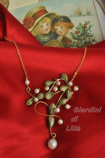 Anche se il Santo Natale è ormai passato, posto uno dei lavori di questo periodo. E' un gioiello ispirato alla natura e in particolare a una delle "bacche" più vendute come augurio per il nuovo anno: il "vischio".